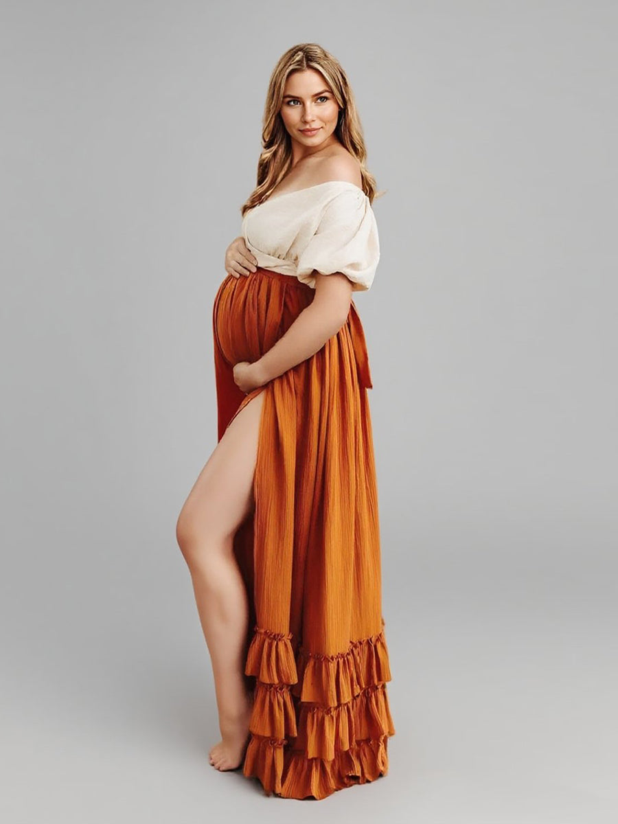 2 Piece Set Maternity Photography Dress Bump Friendly Boho Gown for Photoshoot Comfortable Pregnancy Shooting Dress