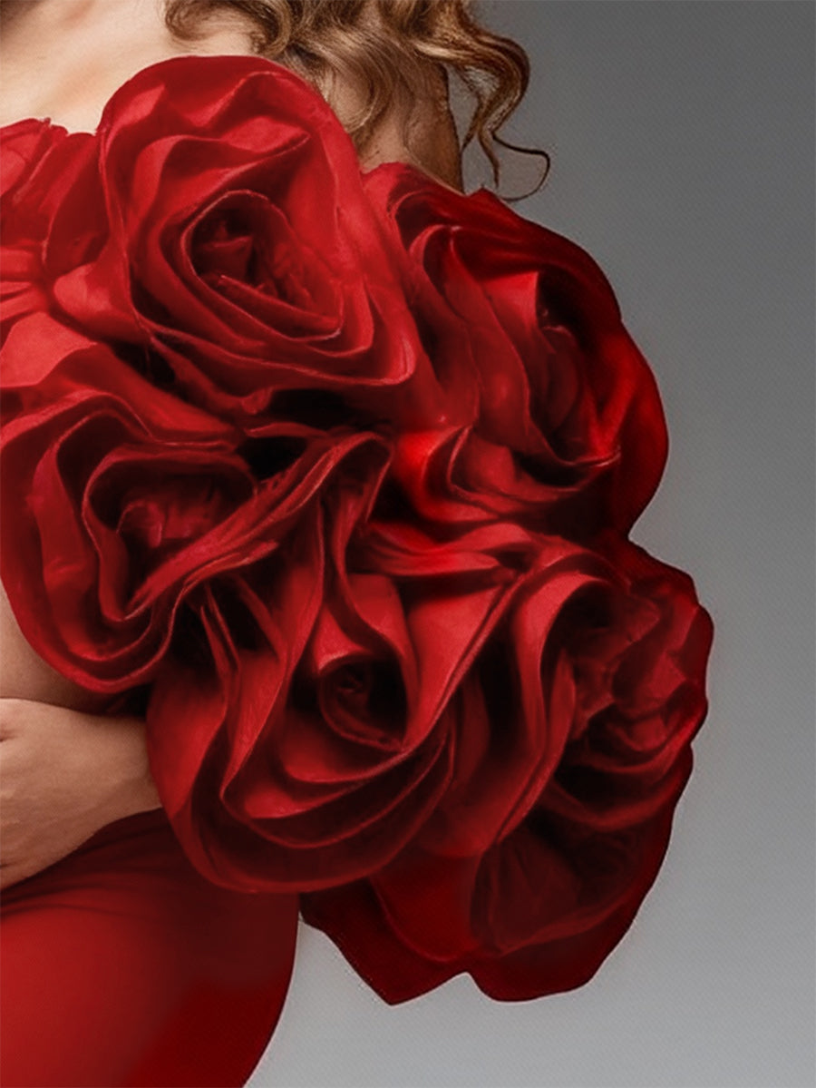 Red Maternity Flowers Cape with Skirt 2 Piece Set Pregnant Gowns Baby Shower Dress YW251040