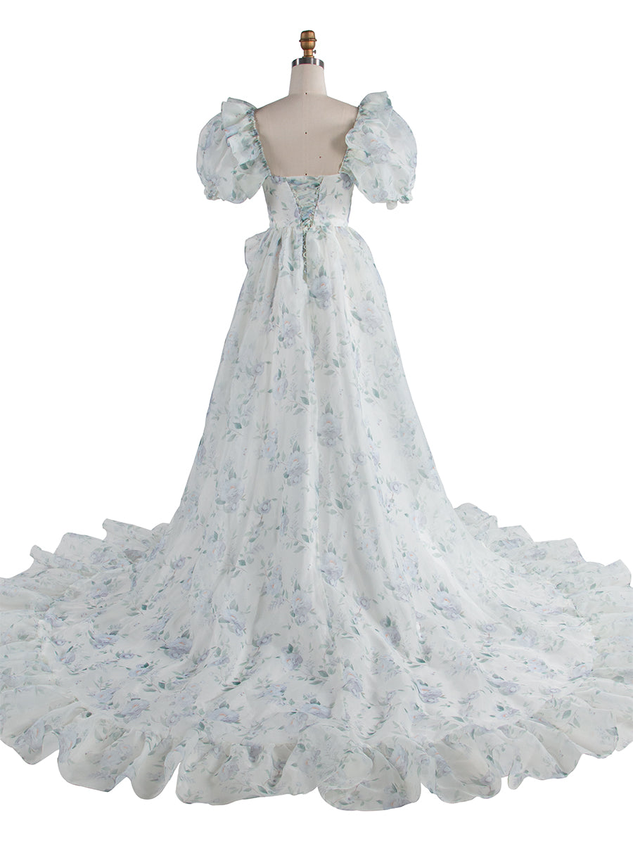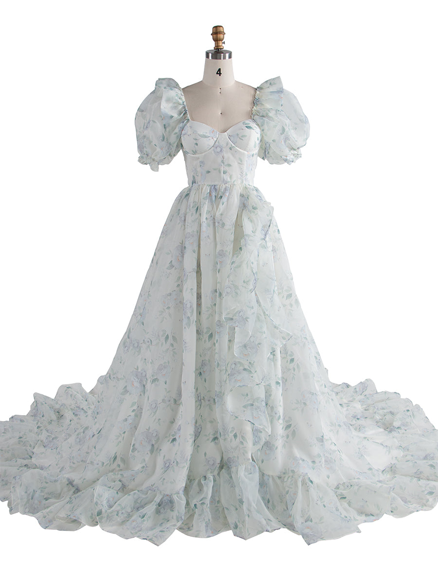 Print Floral Prom Dress Long Train Fancy Photo Shoots Gown Silk Soft Organza Maxi Dress YW231108