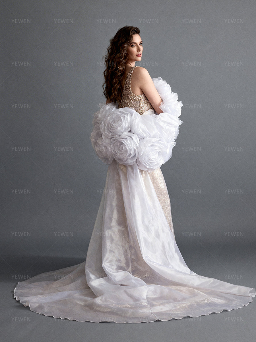 White Organza Cape Detachable Wedding Cape Romantic Lightweight Bridal Accessory