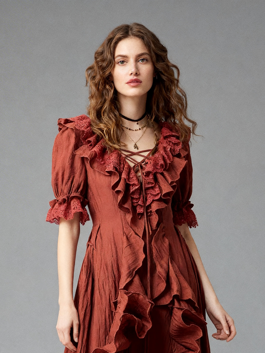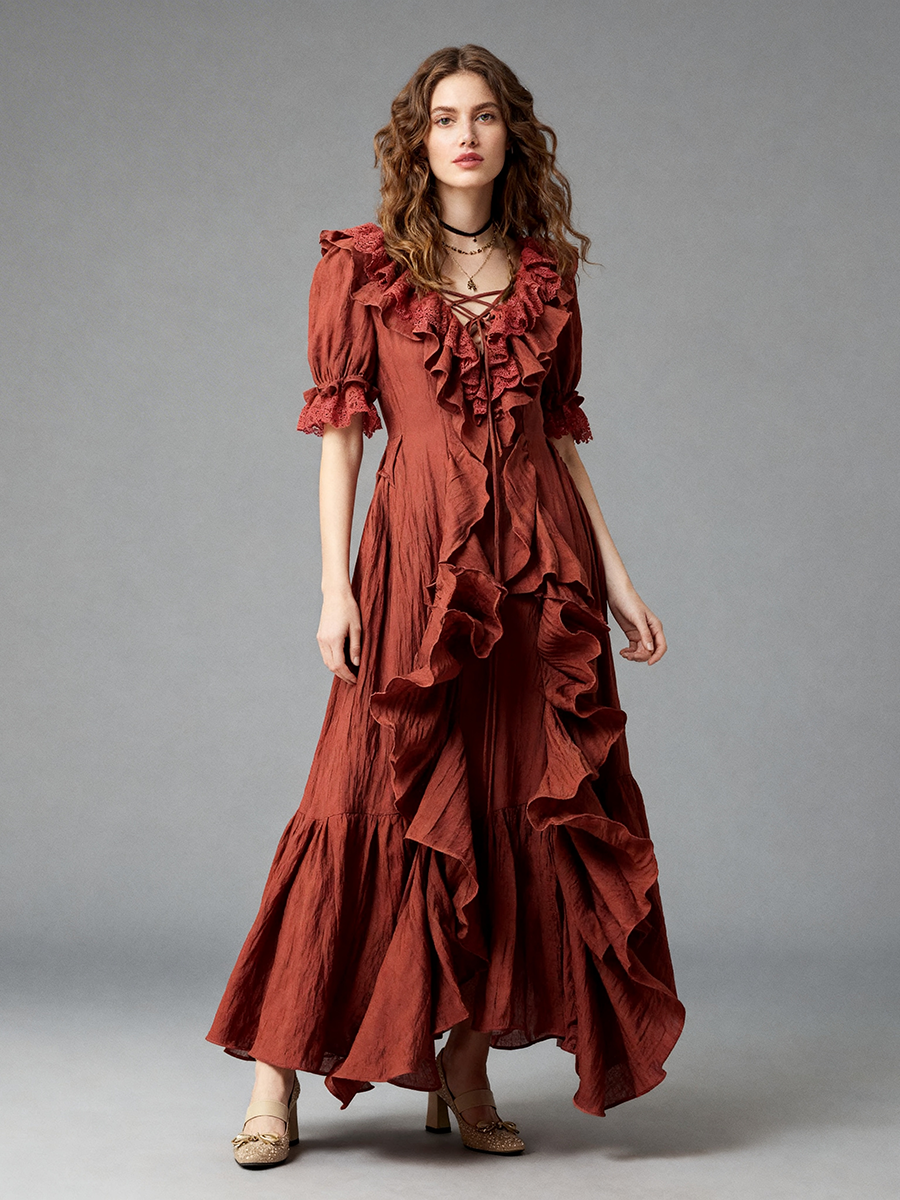 Layer Ruffles Maxi Linen Dress Boho Photo Shoot Gown