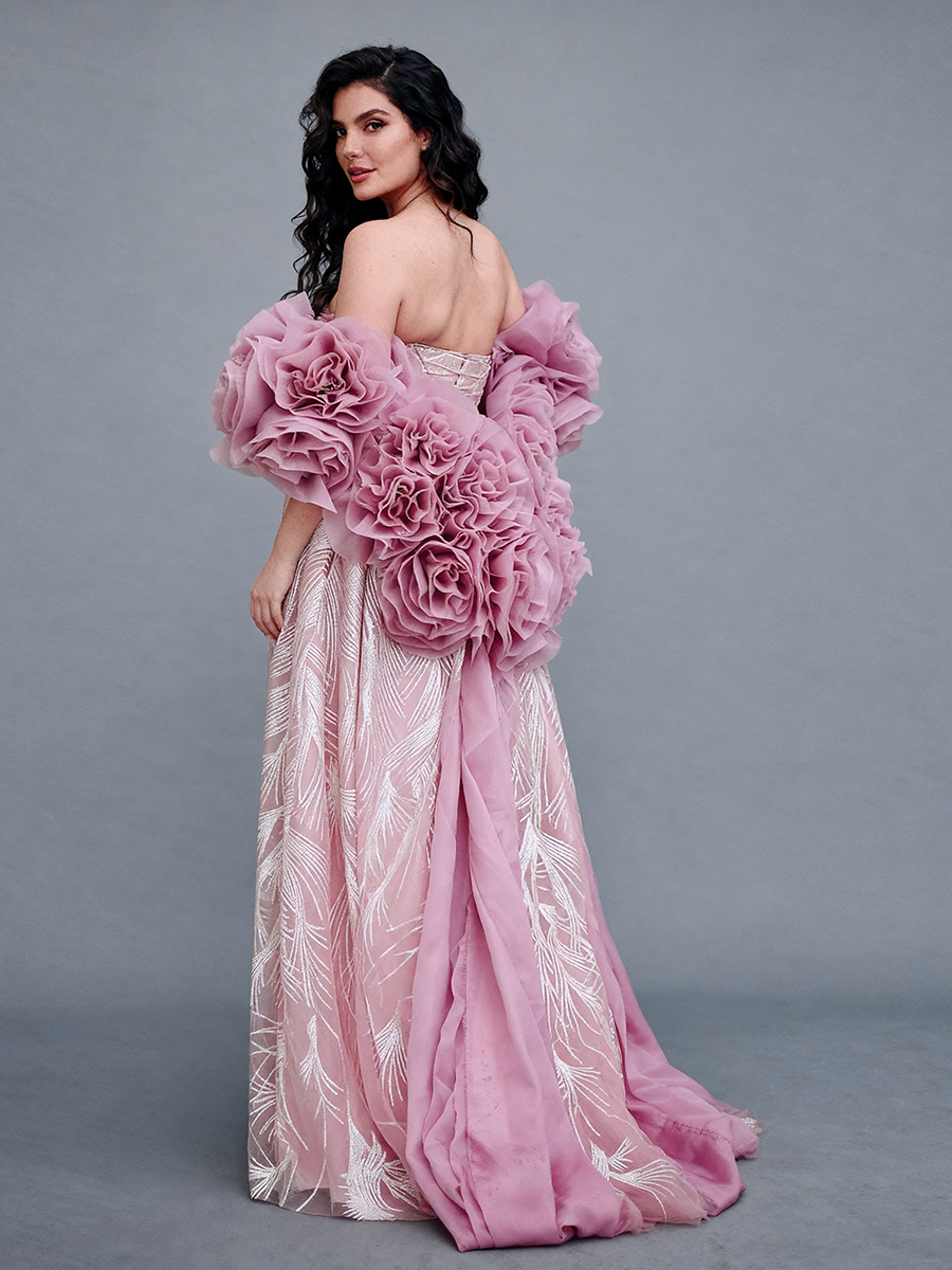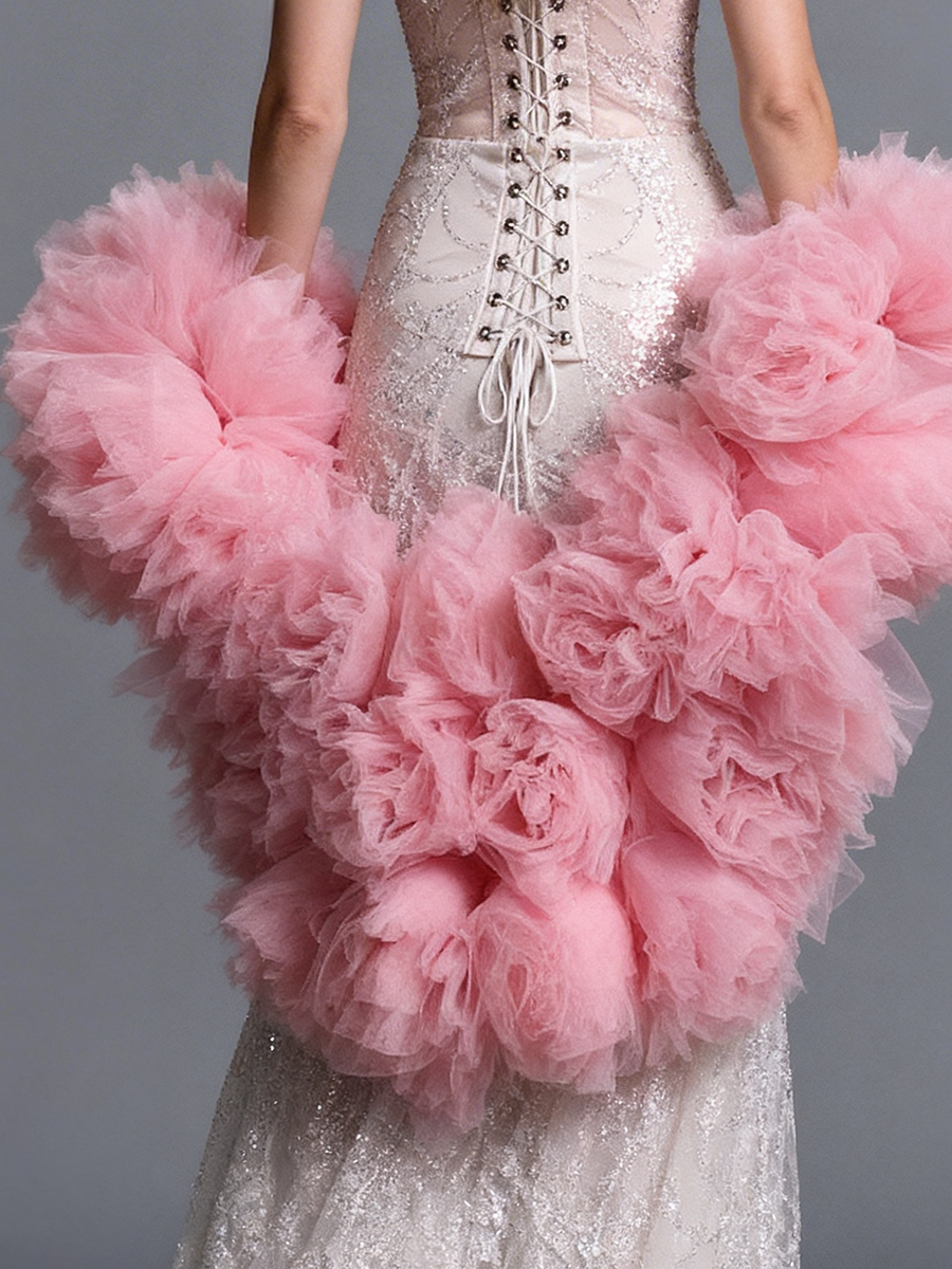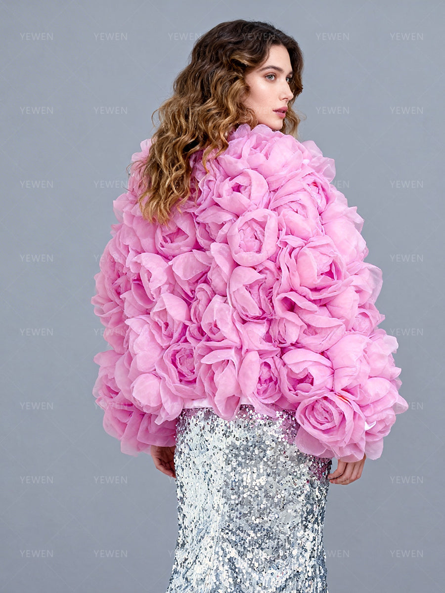 Custom Made Pink Bridal Organza Jacket with Handmade Flowers