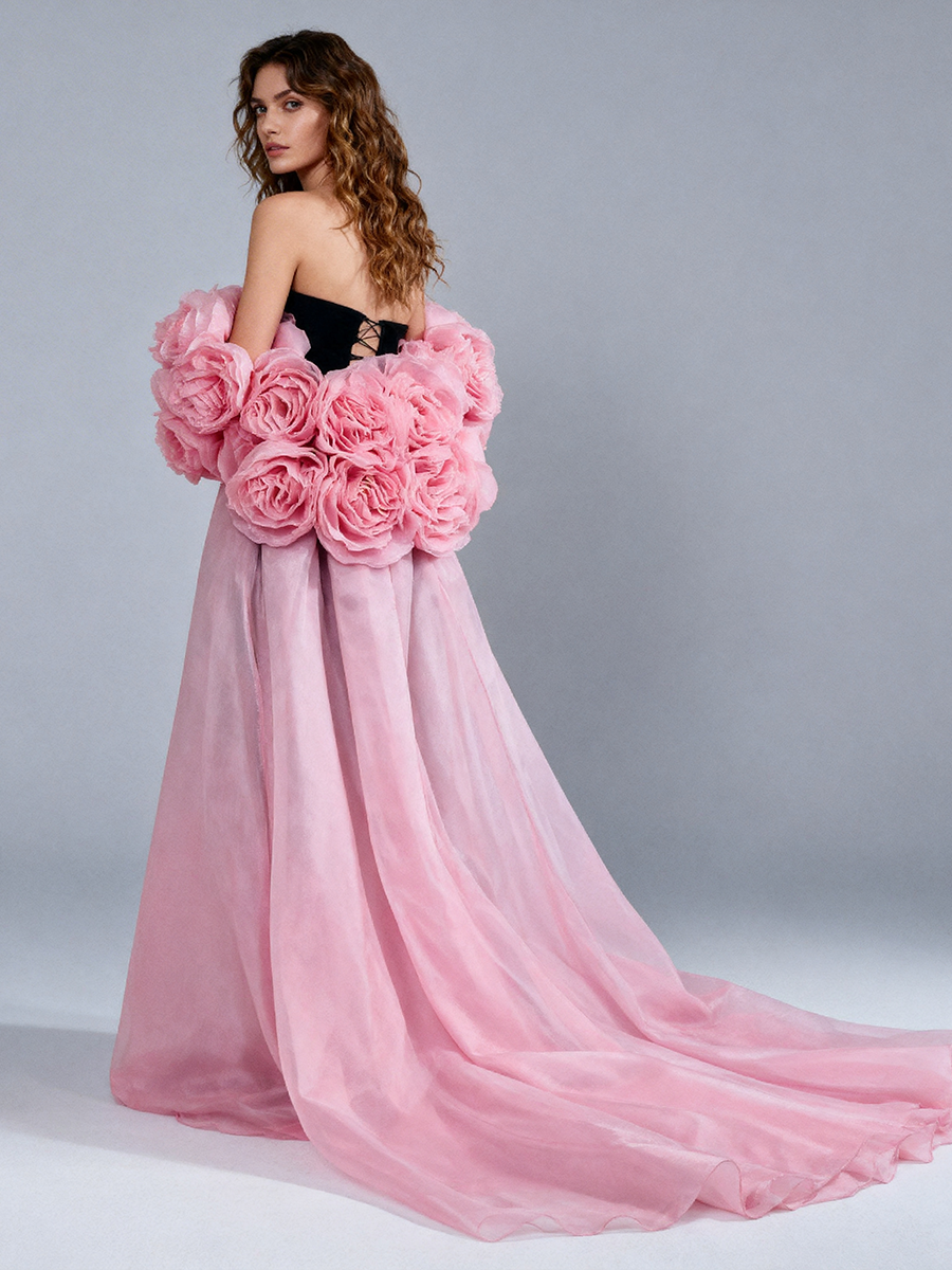 Pink Bridal Organza Cape with Handmade Flowers Detachable Wedding Cape Train Romantic Lightweight Bridal Accessory