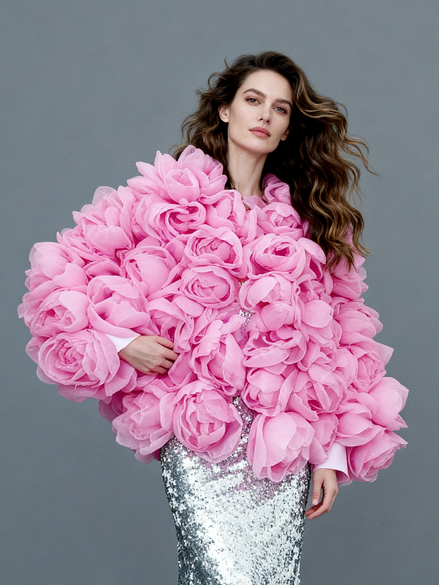 Luxurious Bridal Shrug. Rose Wedding Cape. Custom Color Flowery Shawl. Dreamy Event Cape with Sleeves