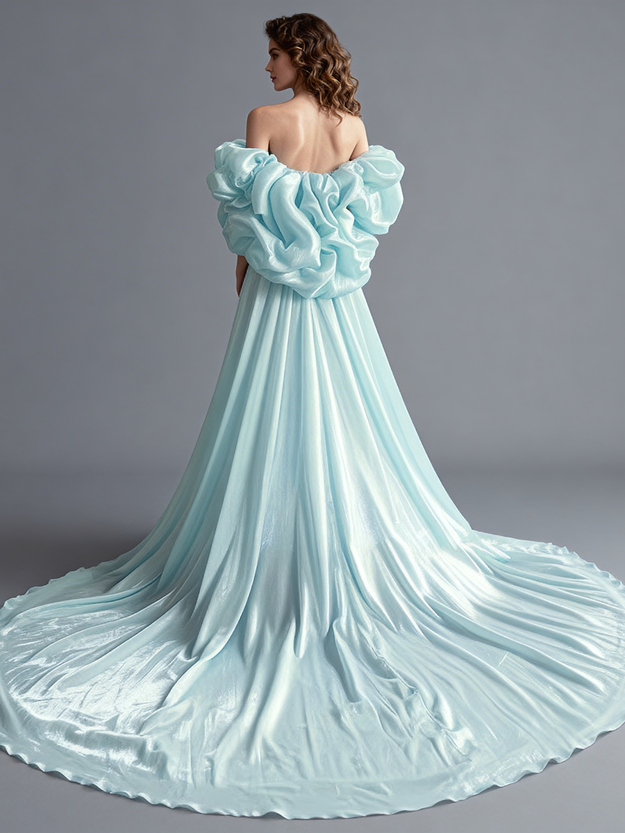 Elegant Evening Gown Ruffled Neckline Flowing Silhouette Dress Special Occasion Dress