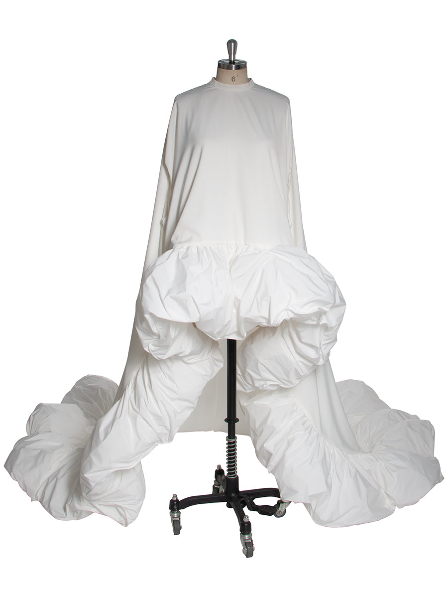 Elegant White Ruched Long Bridal Dress with Train Cape Asymmetrical Formal Maxi Gown for Wedding Photoshoot YW251021