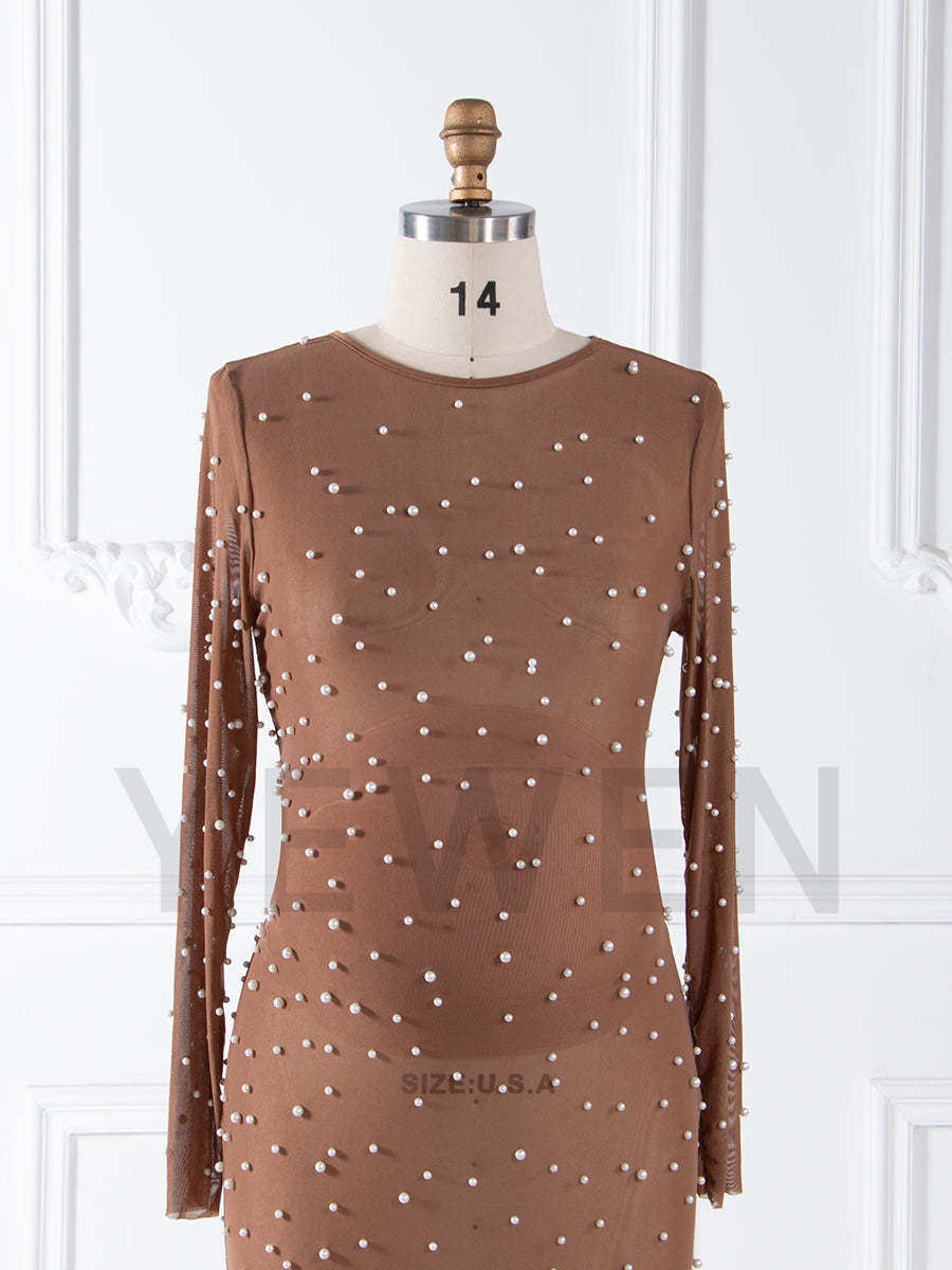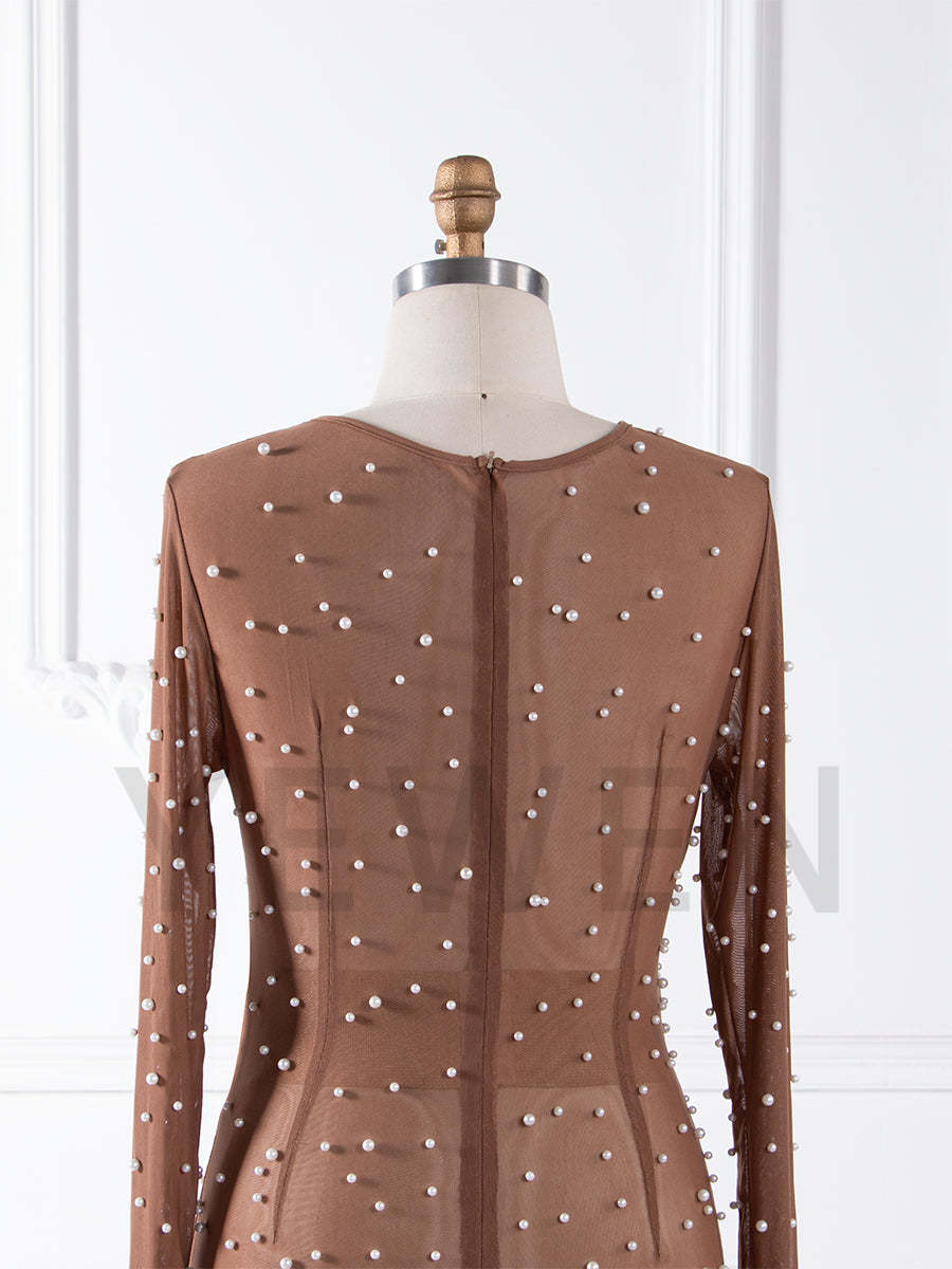 Stretchy Mesh with Pearls Mermaid Maternity Dresses for Photoshoot YW250002