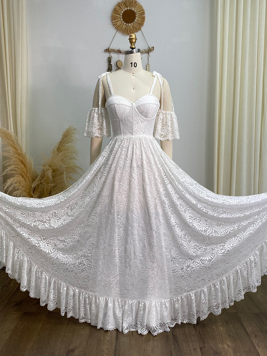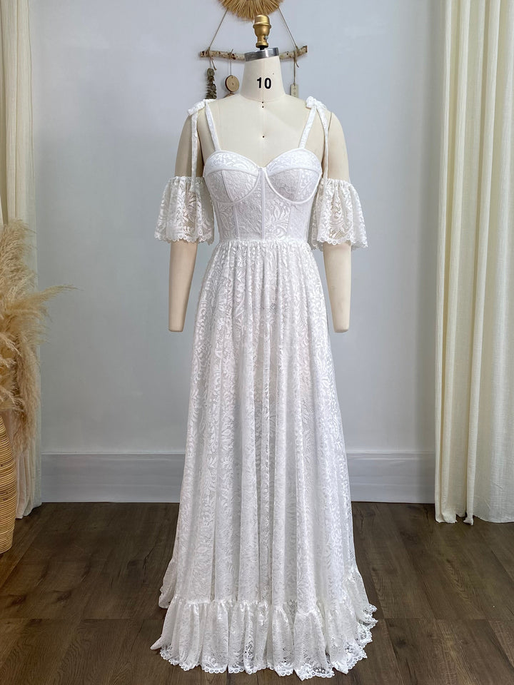 Boho Lace Maxi Dress for Wedding Vintage Bohemian Bridal Dress Elopement Dress YW240036