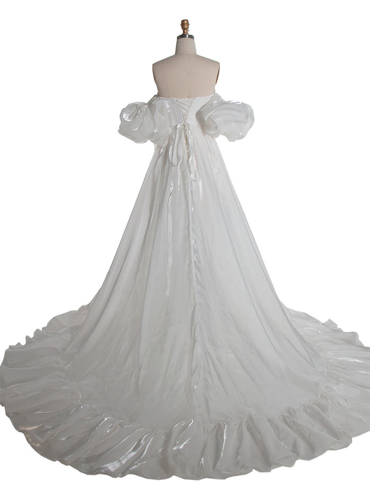Detachable Short Puffy Sleeves Oragnza Holiday Dress Colored Weddng Dresses YW240081