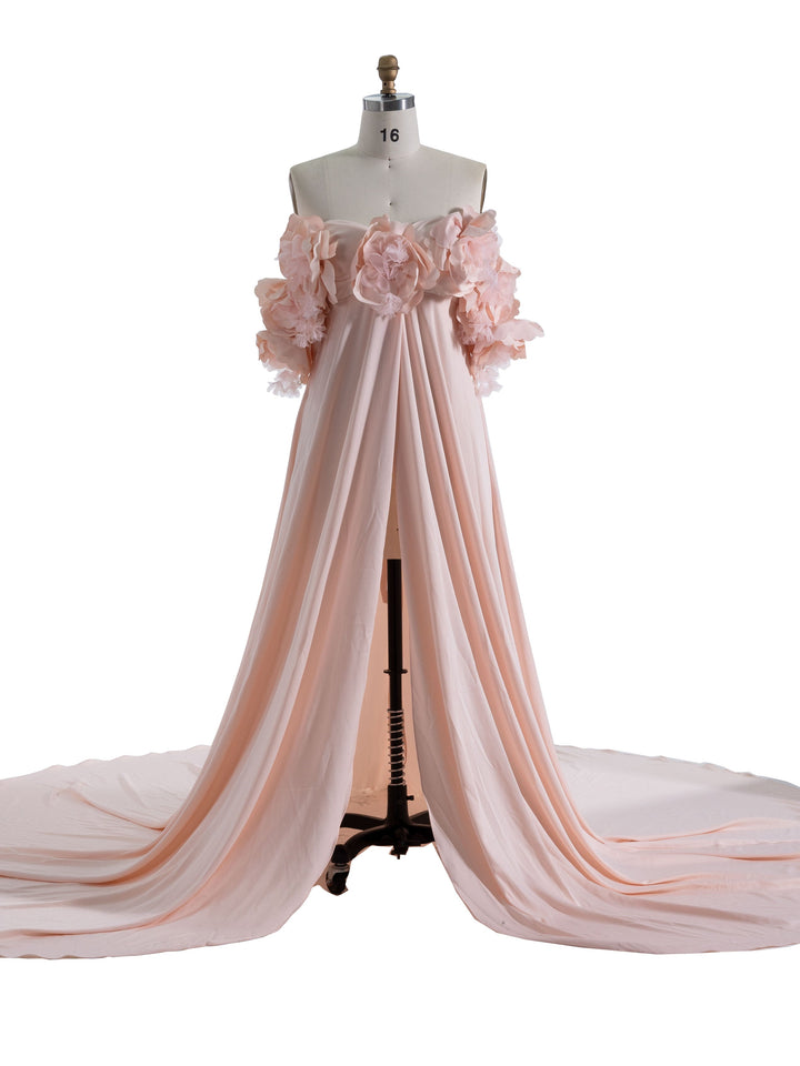 Off Shoulder Handmade Flower Maternity Dress for Photo Shoot Maternity Gown for Baby Shower YW243143