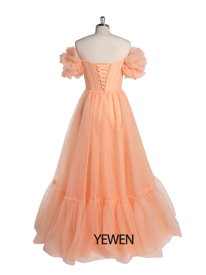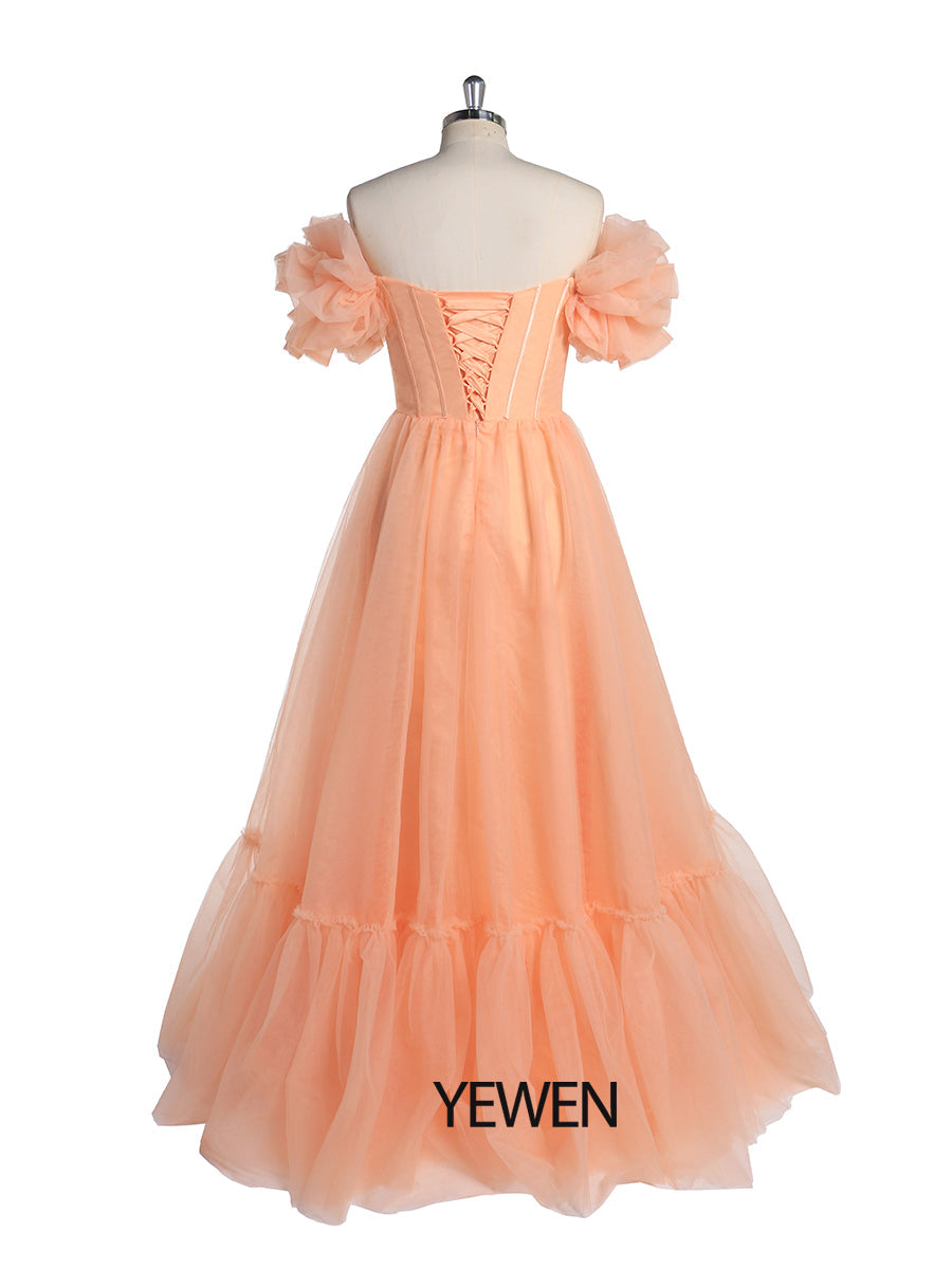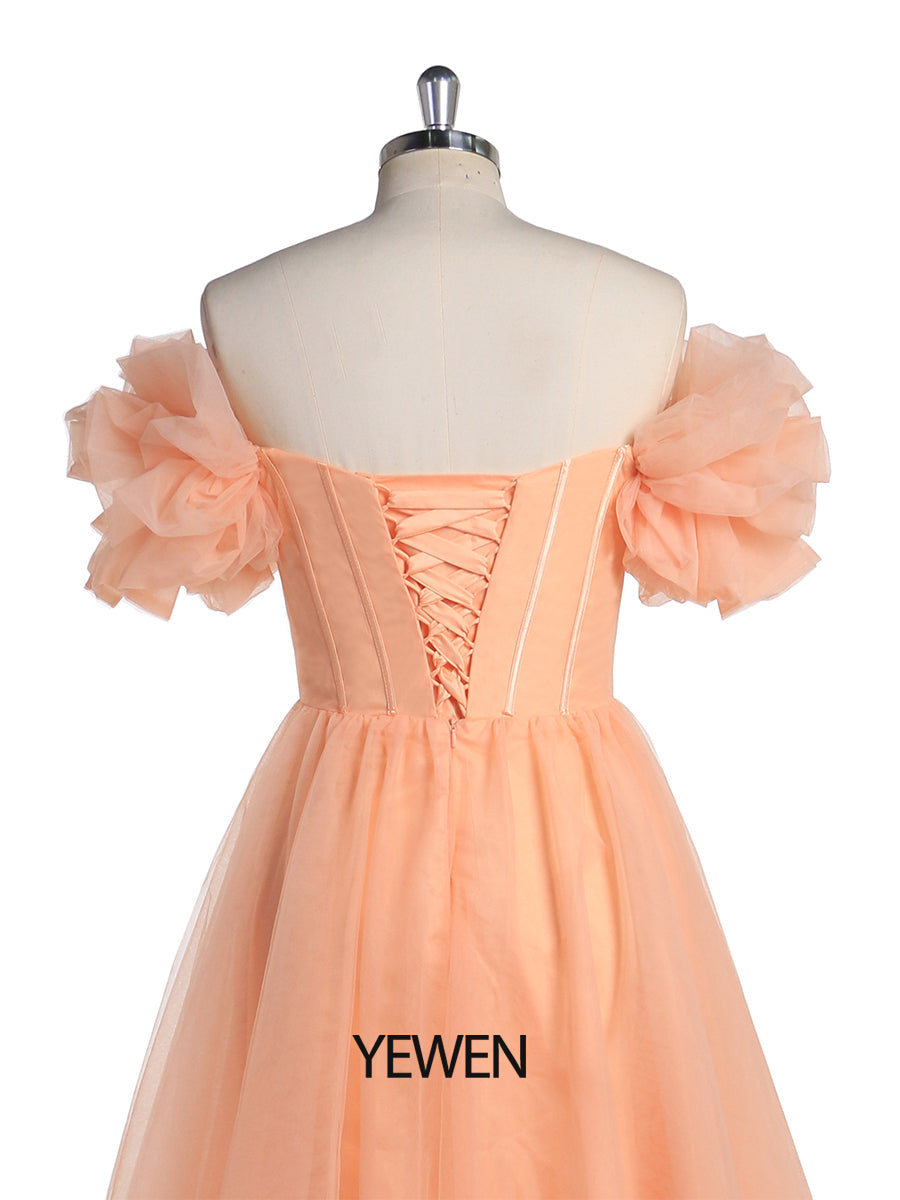 Short Sleeve Off Shoulder Peach Color Dress for Wedding YW21020
