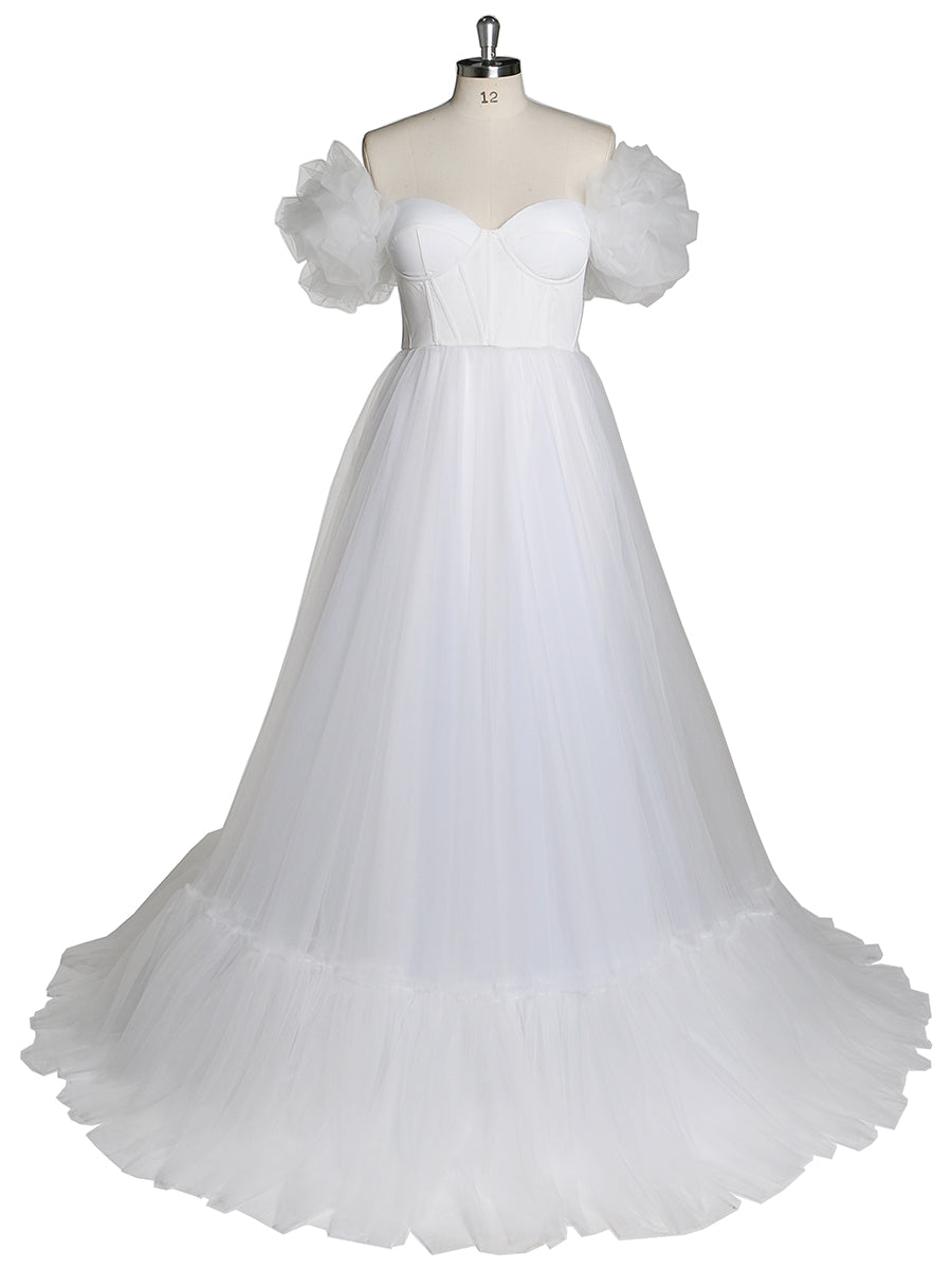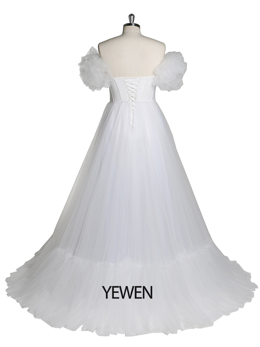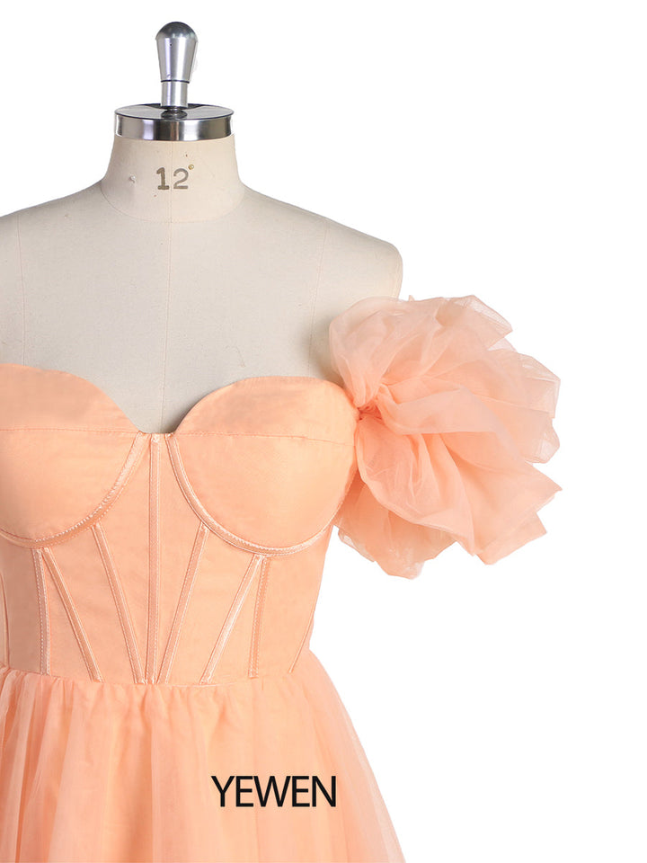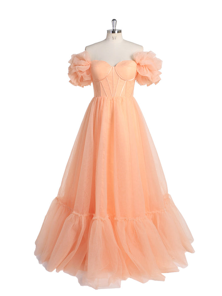 Short Sleeve Off Shoulder Peach Color Dress for Wedding YW21020