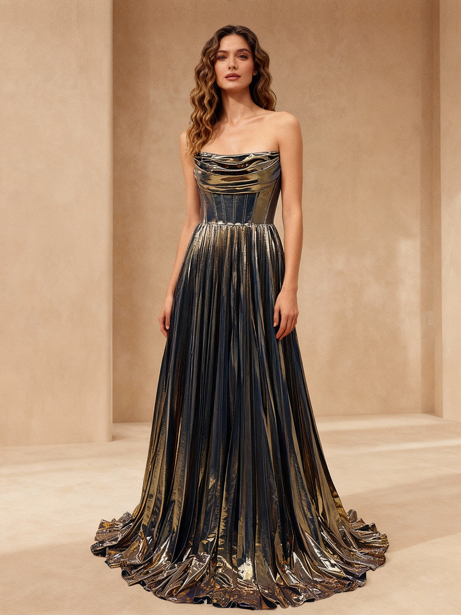 Fashion Pleated Sleeveless, Formal Maxi, Evening Dress