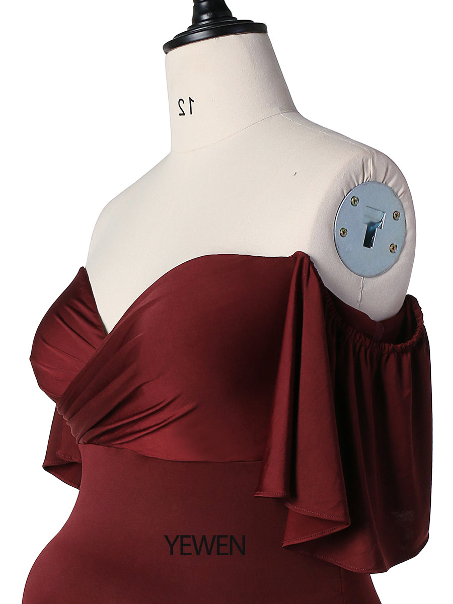 Stretchy Fabric Maternity Dress Bodysuit Off Shoulder Ruffles Short Sleeves Maternity Phography Custom Colors YW2121
