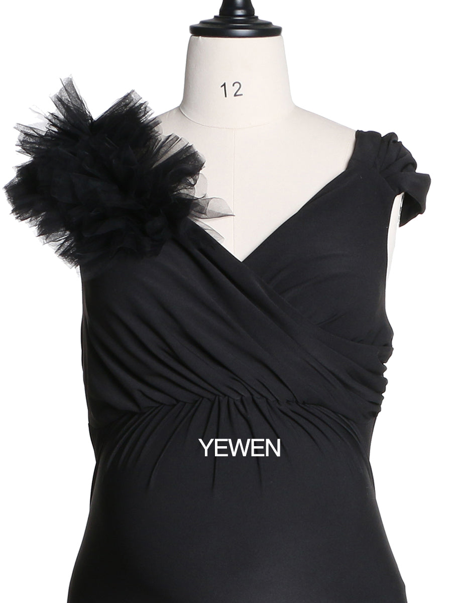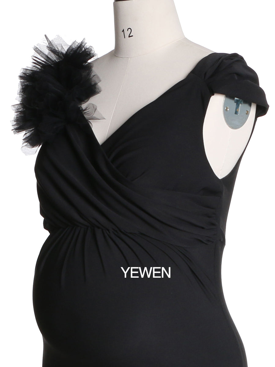 Black Custom colors V Neck Shoulder Flowers Strech Fabric Maternity Dress Bodysuit
