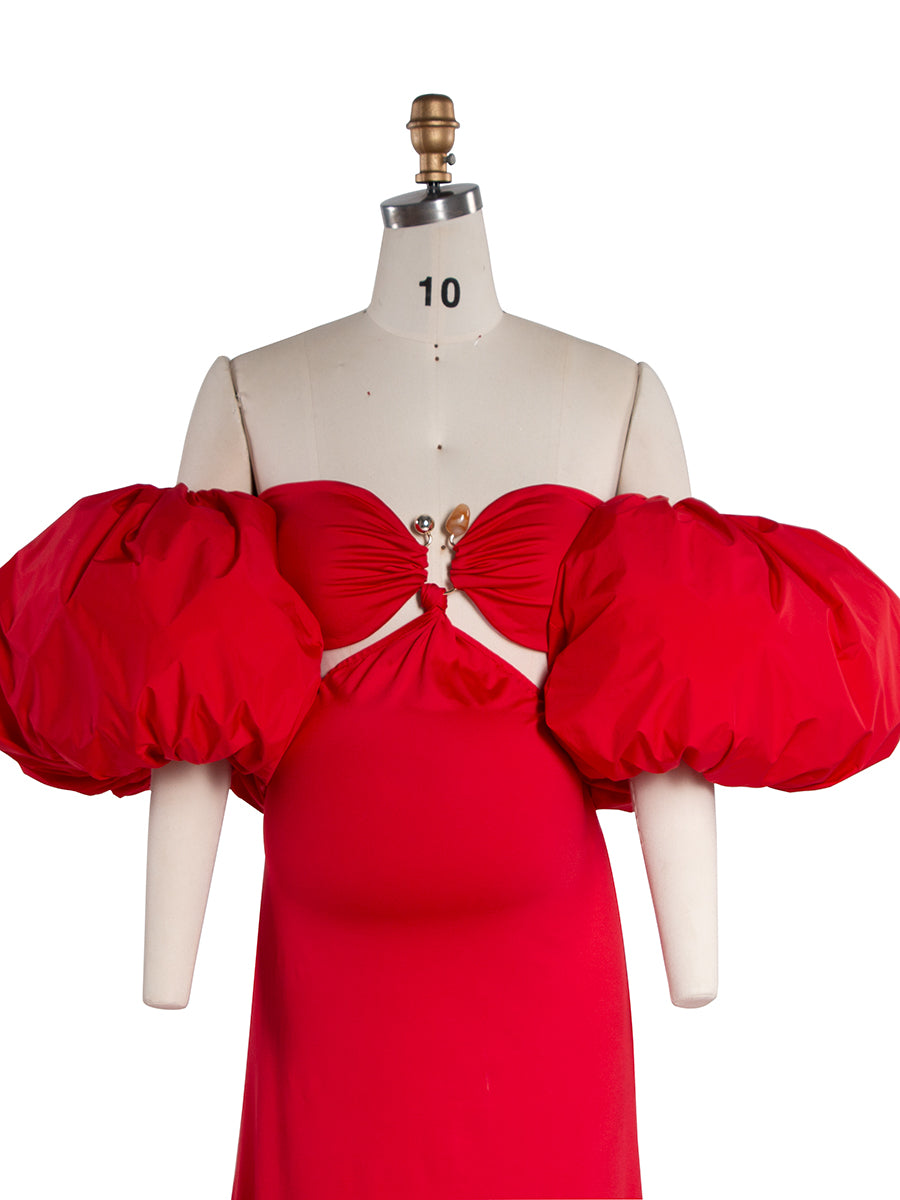 Stretch Mermaid Maternity Photoshoot Dress Puffy Sleeve Baby Shower Gown YW251024