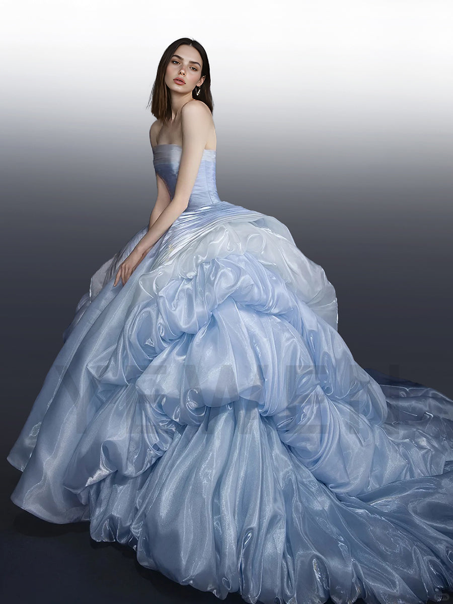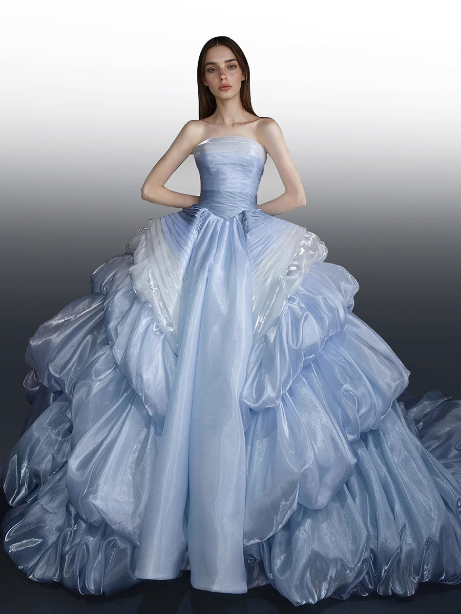 Luxurious Organza Tiered Evening Dress Strapless Prom Gown Customized