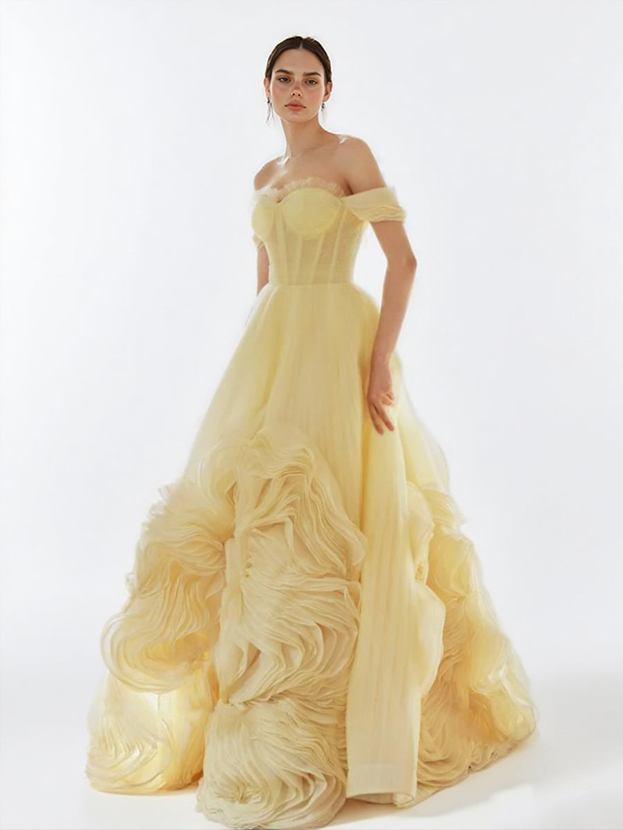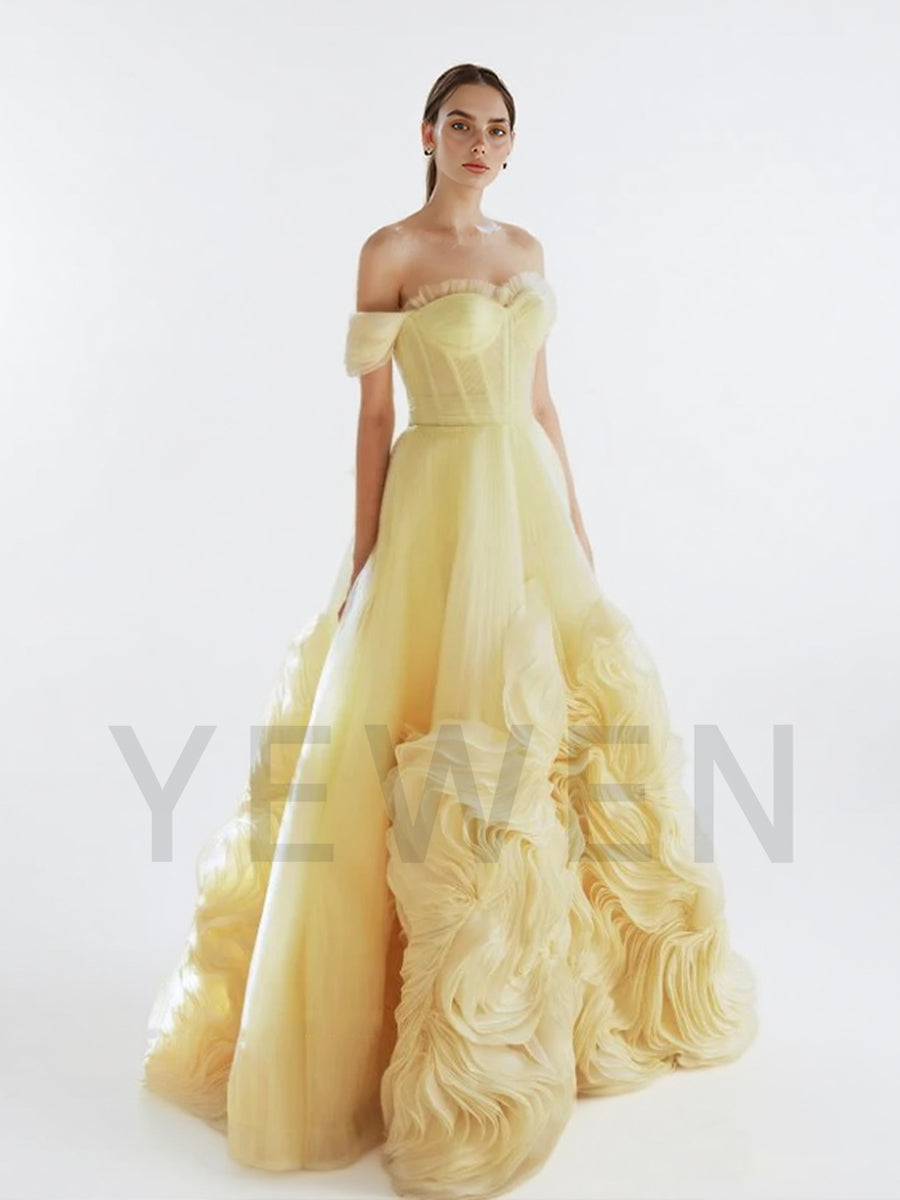 Luxurious Women's Evening Dress Off Shoulder Long Prom Dress Custom Made