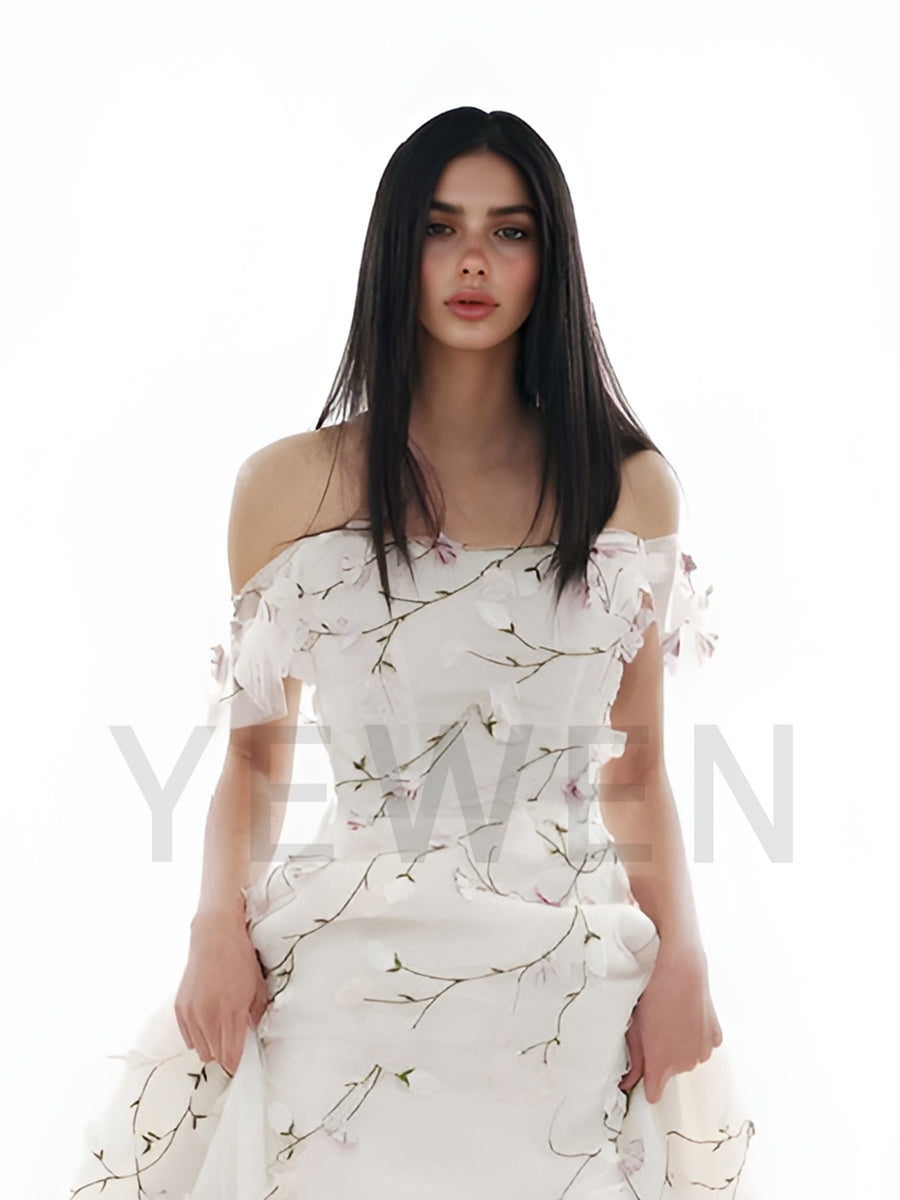Off Shoulder 3D Floral Appliques Evening Dress Women Party Birthday Prom Dress